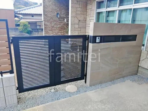 門柱 壁タイル貼り タカショー モーディカ アクセントタイル 東洋石創 ブランノワル 郵便受けポスト YKKAP エクステリアポストG3型 門扉 LIXIL AB YR1型 両開き